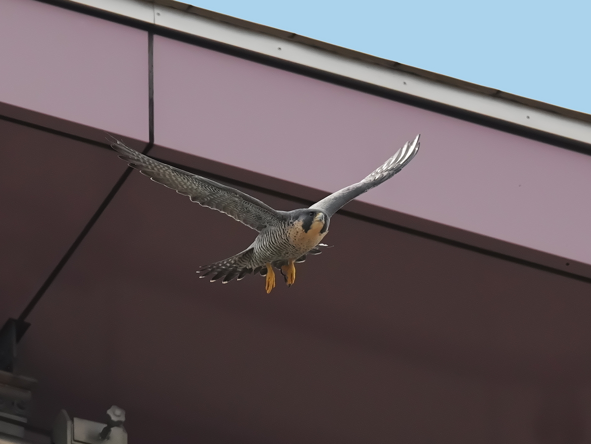 いつものタワーでハヤブサが待機・・・飛び出しを狙うも人工物からではイマイチだ・・・。