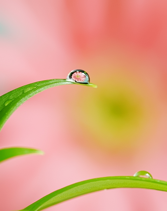家の植物で雫を作り、ガーベラを写し込む・・・。