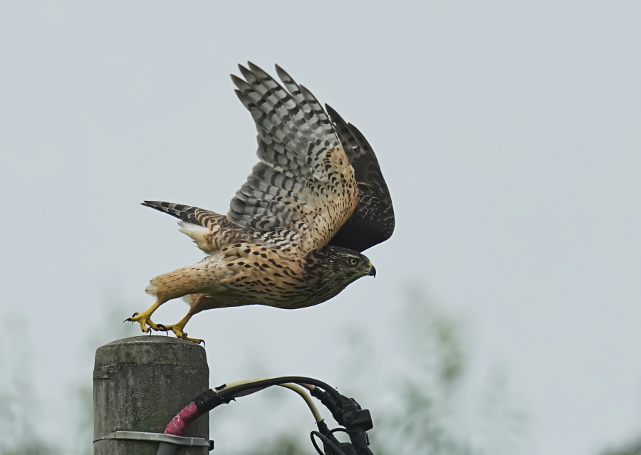 森から出て来て電柱に止まった幼鳥・・・。